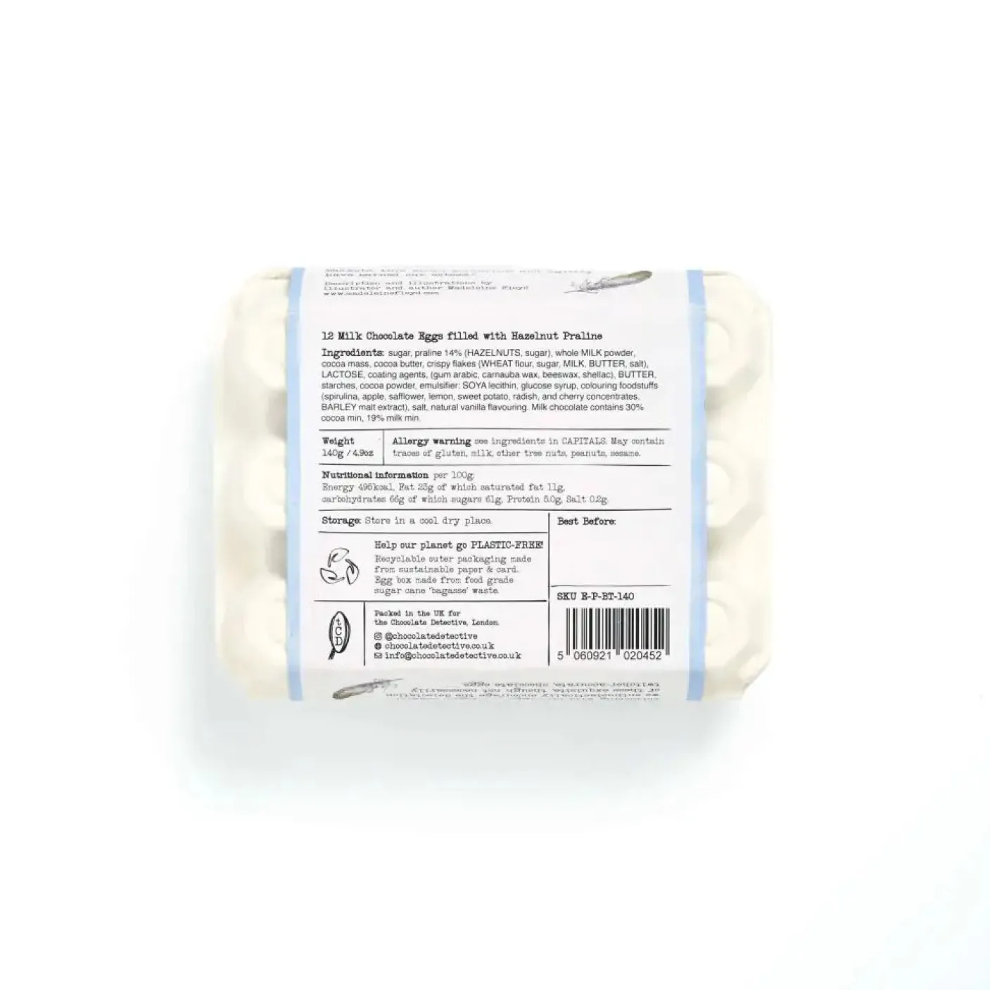 12 Chocolate Eggs filled with a fine hazelnut praline or salted caramel from The Chocolate Detective. 150g