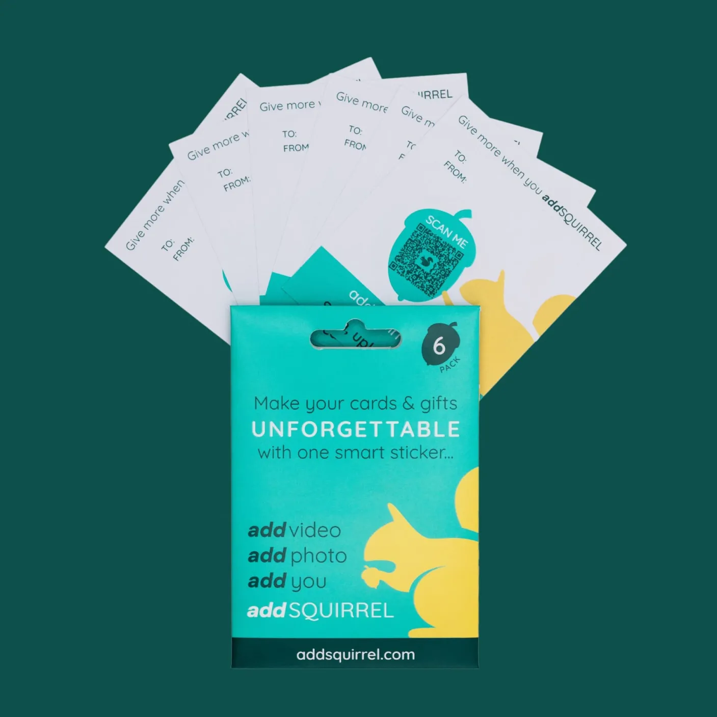 These innovativeaddSQUIRREL smart QR stickers allow you to easily add a personal touch to any card or gift. Whether it’s a heartfelt video message, a cherished photo, or a touching voice note, our stickers let you share your unique moments in a memorable way.