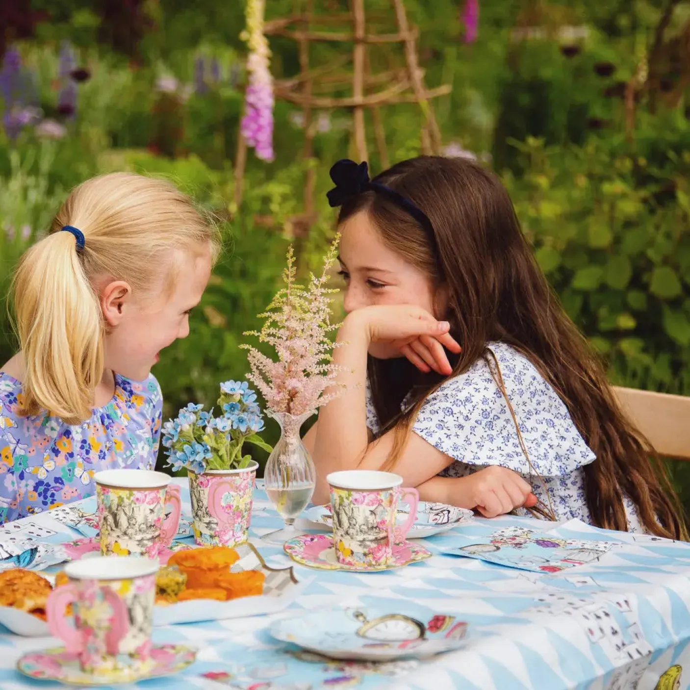 Alice in wonderland teacups and saucers set by Talking Tables. Each pack contains 12 paper teacups and saucers with the classic floral vintage tea-party feel. Perfect for a birthday party, kid’s tea party, mad hatter tea party, mother’s day table or even a baby shower!