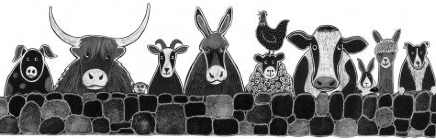This is a beautifully simple stoneware mug by Moorland Pottery. This mug features a group of farm animals.