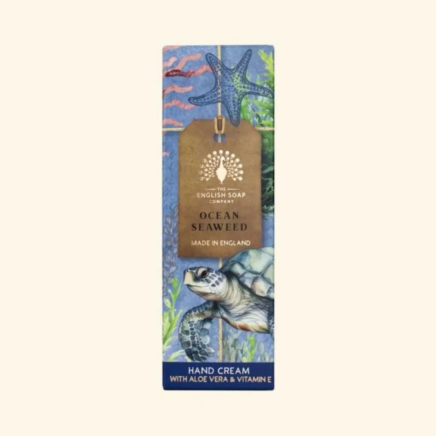 Experience luxury self-care with this Anniversary Ocean Seaweed Hand Cream by the English Soap Company. Beautifully fragranced and expertly made from quality ingredients, this moisturising hand cream is enriched with aloe vera and shea butter. Its non-greasy formula absorbs easily, leaving your skin scented and nourished. Featuring aluminium tubes and fully recyclable packaging adorned with charming illustrations, these eco-friendly creams are perfect for gifting or taking on the go to keep hands hydrated.