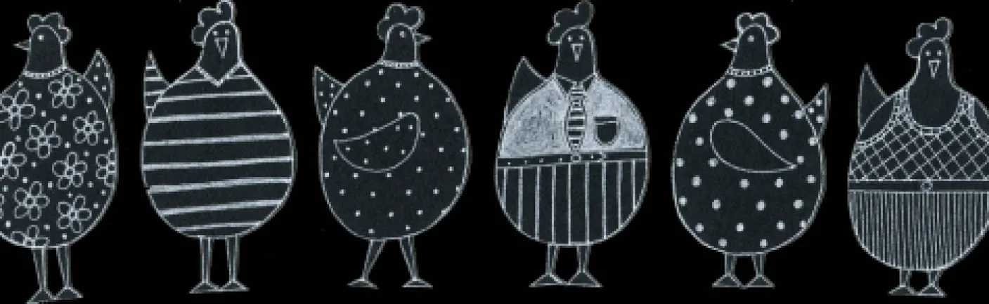 This is a beautifully simple stoneware mug by Moorland Pottery. This mug features a row of black-and-white chickens.