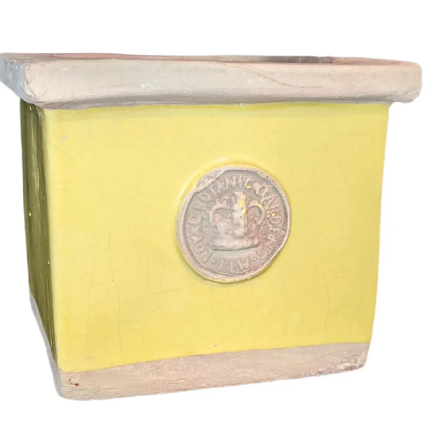 These square herb pots are a fan favorite. They are the perfect size for a windowsill and pair perfectly with a 4″ plant. You will fall in love with the cube look. Authentic English inspired potterywith the official seal of the Royal Botanical Gardens, Kew.ThisSquareHerbPot is entirely handcrafted by Artisans, these beautiful pots are suitable for indoor use or outdoor use although we advise bringing them indoors during particularly frosty periods as they can crack. With each purchase of these beautiful pieces, funds are contributed to the gardens and its important, on-going work. Each item is individually crafted and therefore no two items are identical and minor imperfections are inherent and add to the beauty of these products.