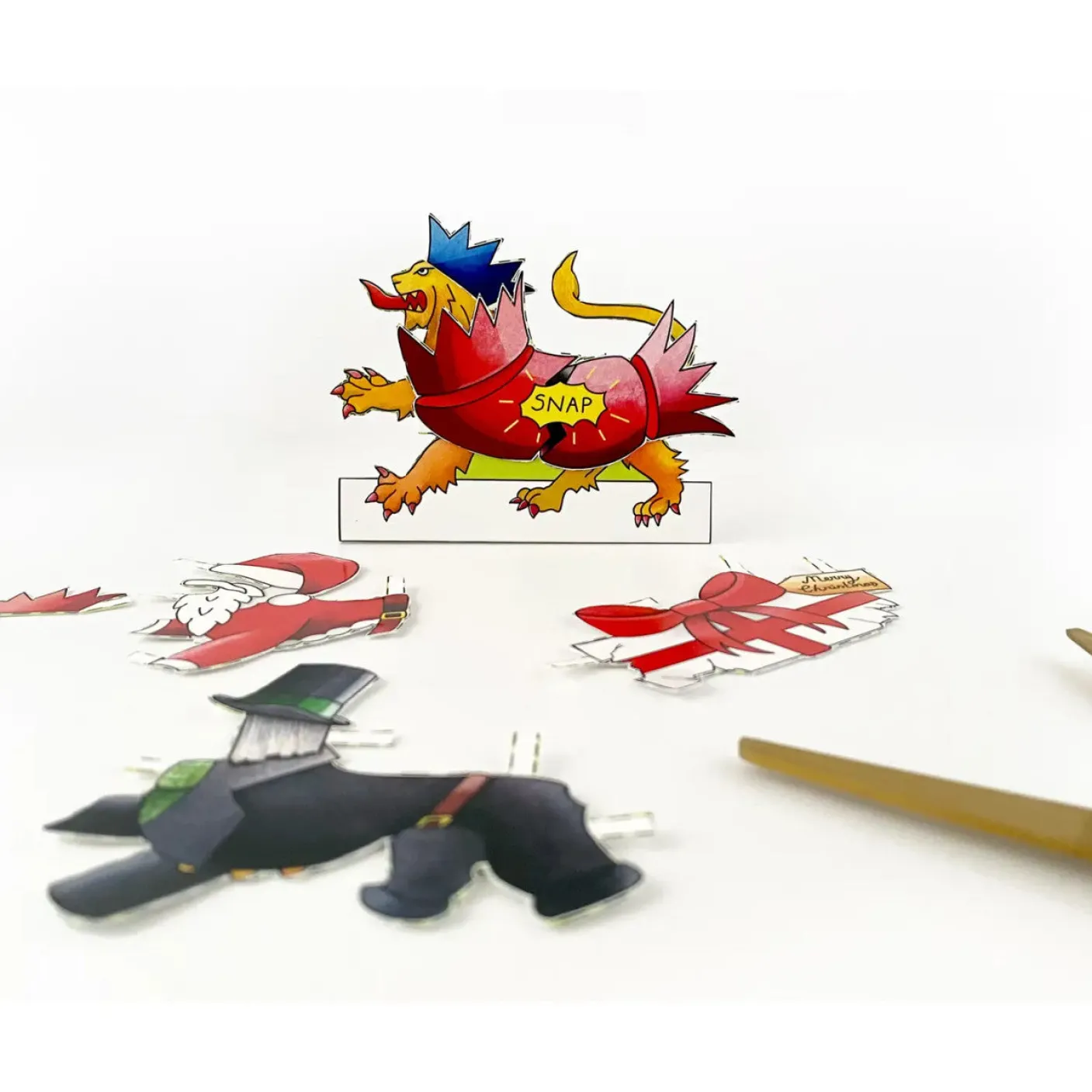 Get crafty this christmas and send a card that can be transformed into a fun desktop decoration! ‘dress an english lion’ christmas cards feature four festive themed outfits; santa claus, ebenezer scrooge, a gift box and a christmas cracker. Simply cut around the dotted line and dress the english lion in your favourite! ‘dress an english lion’ christmas cards are printed onto high quality trucard, a specialist greetings card material that is glossy coated and scratch-proof on the outside, and uncoated on the inside so it’s easy to write on. 300gsm card is used for high-quality greetings cards that last. The card is blank inside for your own message and comes with a red paper envelope. Card measures 148mm x 148mm and is suitable for letter post.