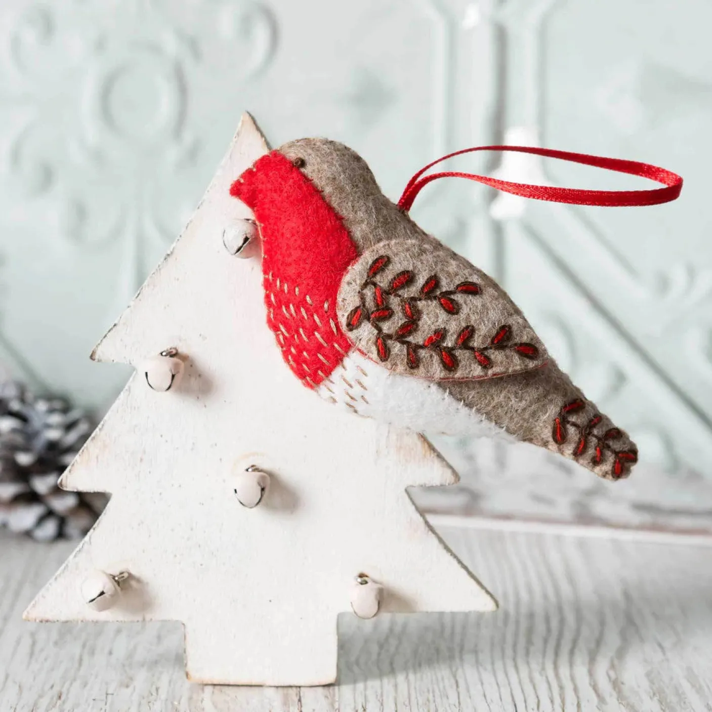 Corinne Lapierre’s Robin mini craft kit contains everything you need to make one felt hanging decoration. A feathered friend in winter and the festive season, he is too sweet to put away come spring.