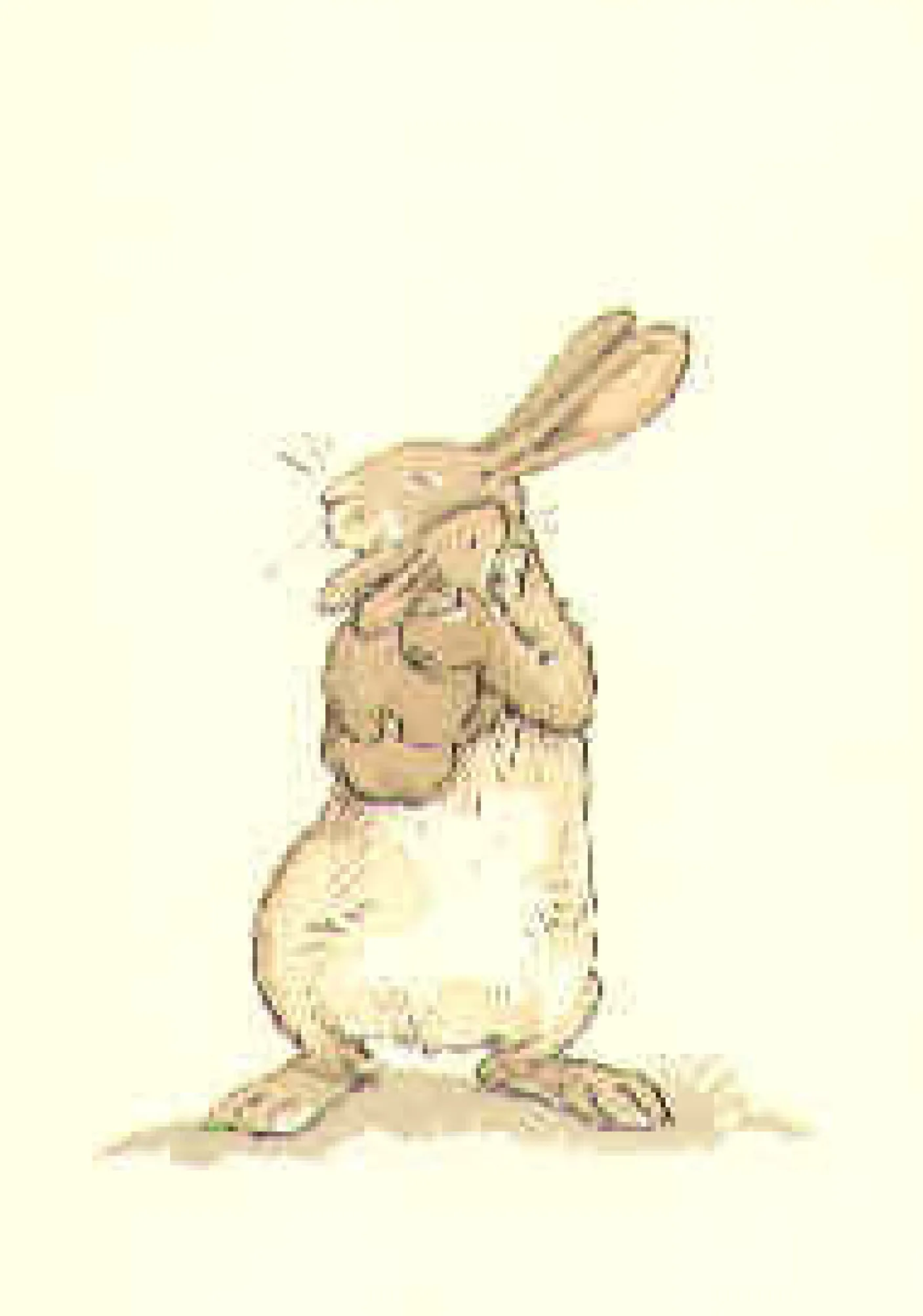 This fun Greetings card by artist Anita Jeram shows 2 bunnieshugging.The card is blank on the inside for your own message and measures 6in x 4 in.