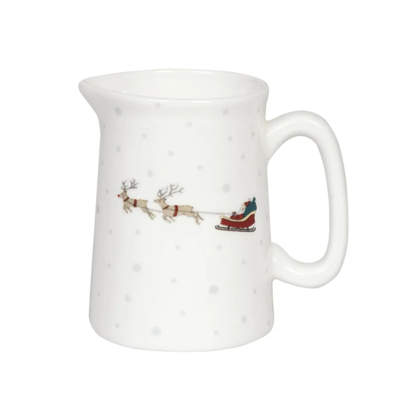 Santa’s sleigh and flying reindeers sit in the centre of these festive fine bone china jugs. Available inthreedifferent sizes,they’re ideal for cream or custard with deserts.