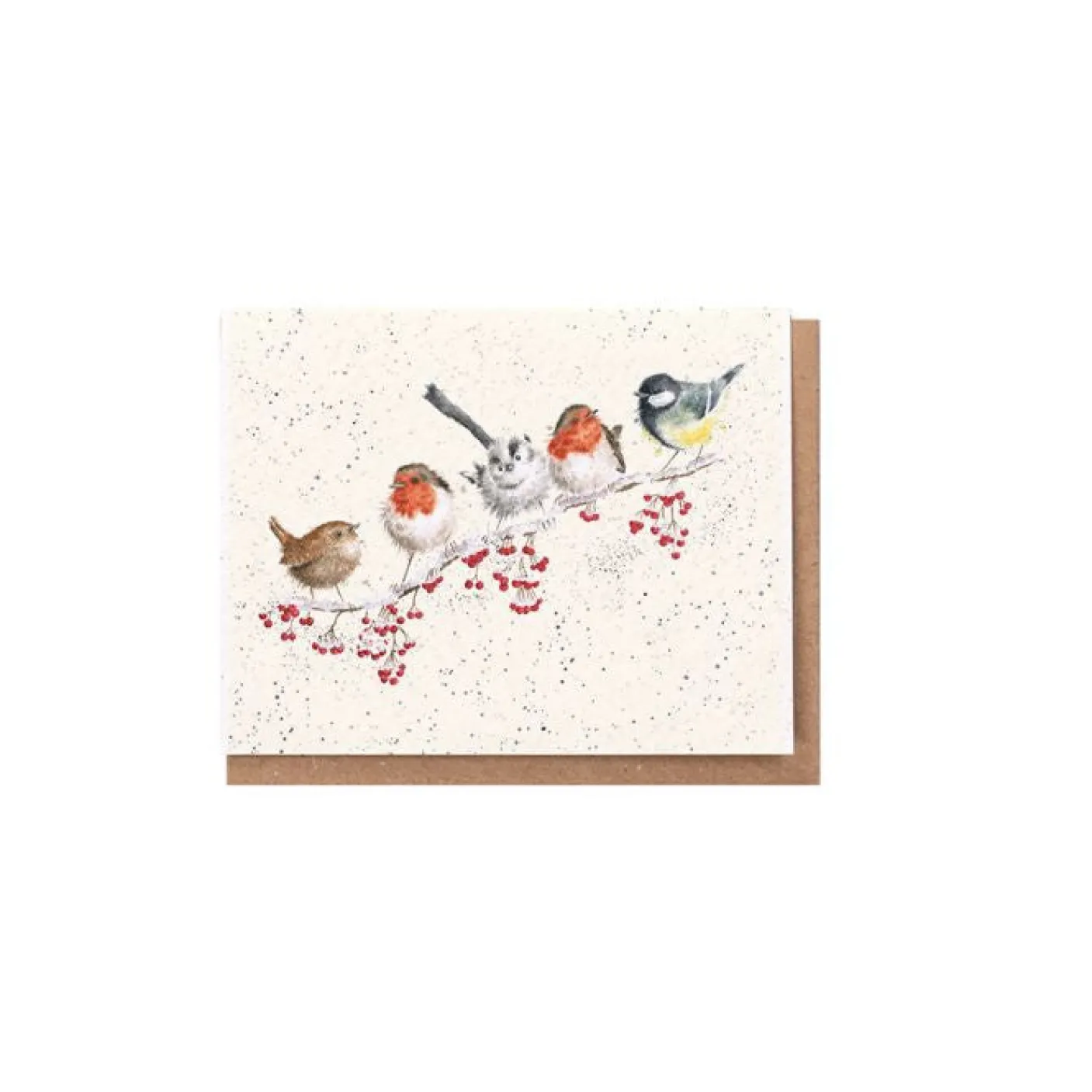 This gift enclosure card features a branch of birds.Perfect for adding to a gift and sending warm wishes throughout the holiday season. Printed on 350gsm sustainably sources textured board and supplied with a recycled kraft envelope. Measures 3.58 x 2.83 inches.