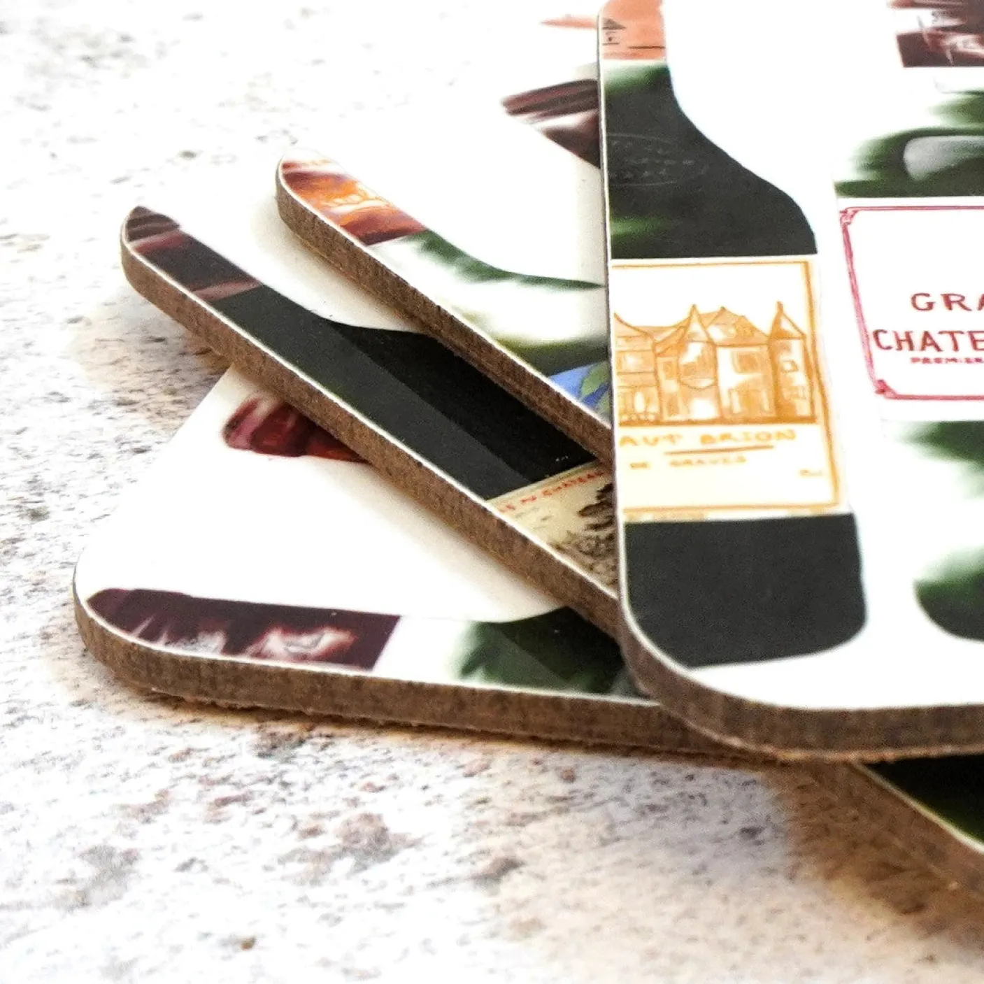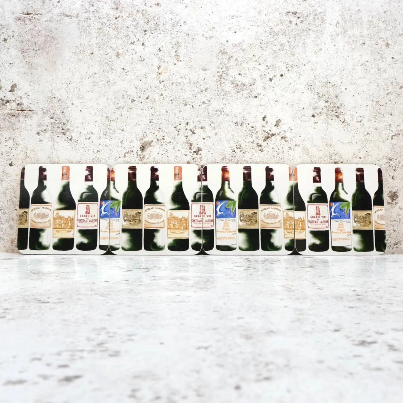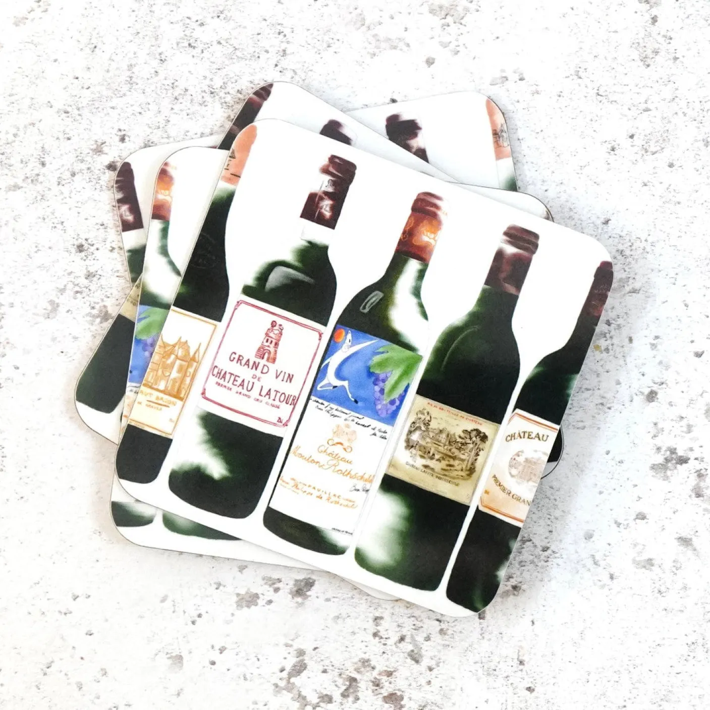 This coaster set is the perfect gift for red wine lovers. Set of 4. Each mat is 4in x 4in.