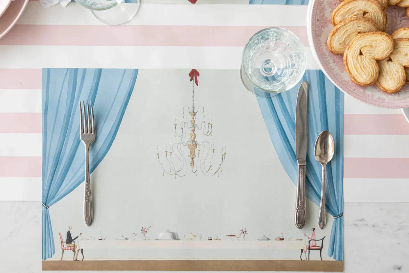 Set the scene for your next meal with these Table for Two Placemats! Featuring a whimsical and magnificent dinner stage painted by artist, Laura Stoddart, this placemat is perfect for an intimate table for two or for hosting a fabulous soirée. Our paper placemats add an elegant touch to any tablescape.