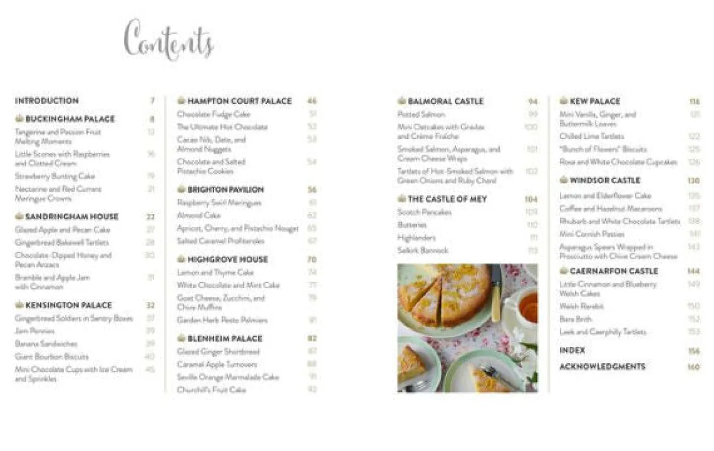 Each of the 12 chapters takes the reader behind the scenes of one of Britain’s most famous palaces or castles. The signature treats, which are drawn from the author’s time at these royal residences, range from an elegant tiered lemon sponge cake strewn with elderflowers to whimsically decorated gingerbread soldiers to warm salmon tartlets perfect for a fall afternoon in the Scottish Highlands.