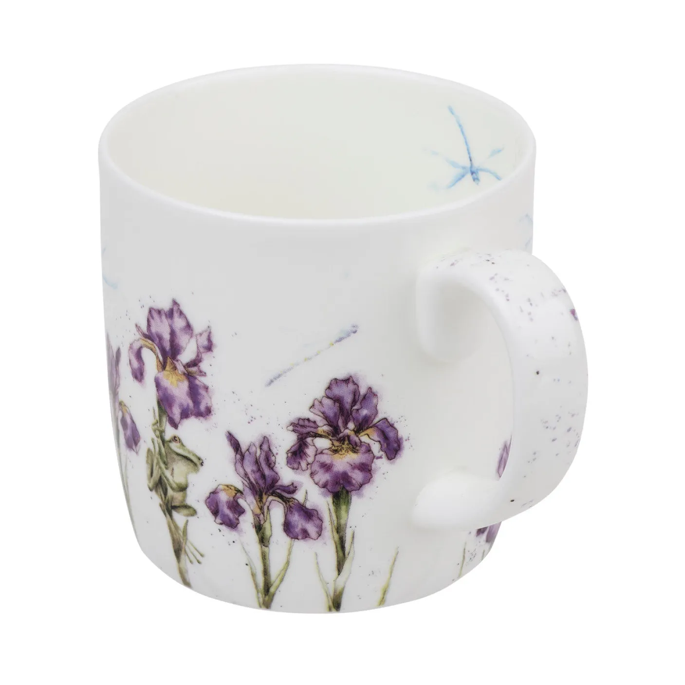 This beautifully illustrated “Pond Prince” mug starring a charming frog amongst the iris, is crafted of fine bone china. The mug has a different image on the front and back and a third image on the inner rim. Its generous 14 ounce size makes this mug perfect for a well-deserved brew anytime and can be put straight into the dishwasher afterwards.