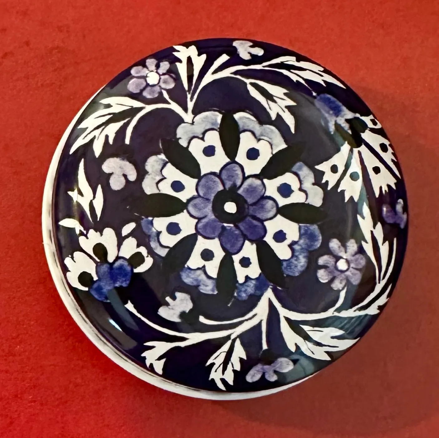 Inspired by Chinese ceramics, this small round tin box will bring a refined touch to your interiorin Claire Winteringham’s Blue & White range!