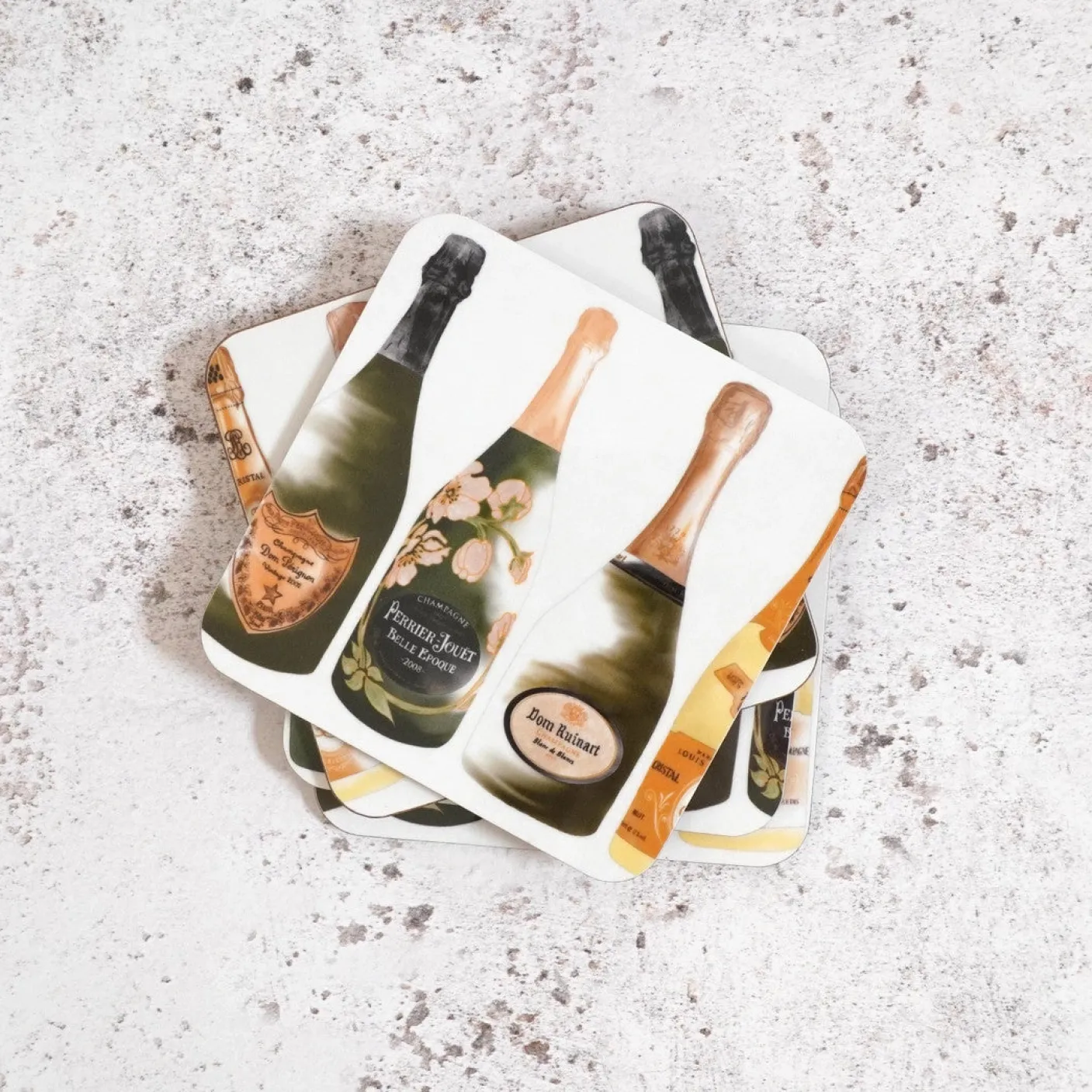 This coaster set is the perfect gift for champagne lovers. Set of 4. Each mat is 4in x 4in.