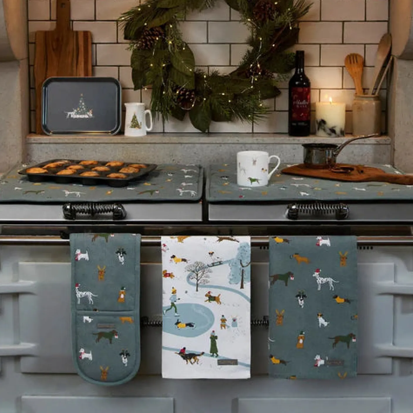 Covered in westies, dachshunds, dalmatians, jack russells, cockapoos, springer spaniels, labradors and cocker spaniels all sporting fun Christmas outfits on a winter teal ground. The reverse of the glove and inside each hand pocket has a polyester thermal layer for extra protection and there is also a handy ‘loop’ in the middle of the glove, so you can hang it up in your kitchen. The perfect kitchen accessory for dog lovers.