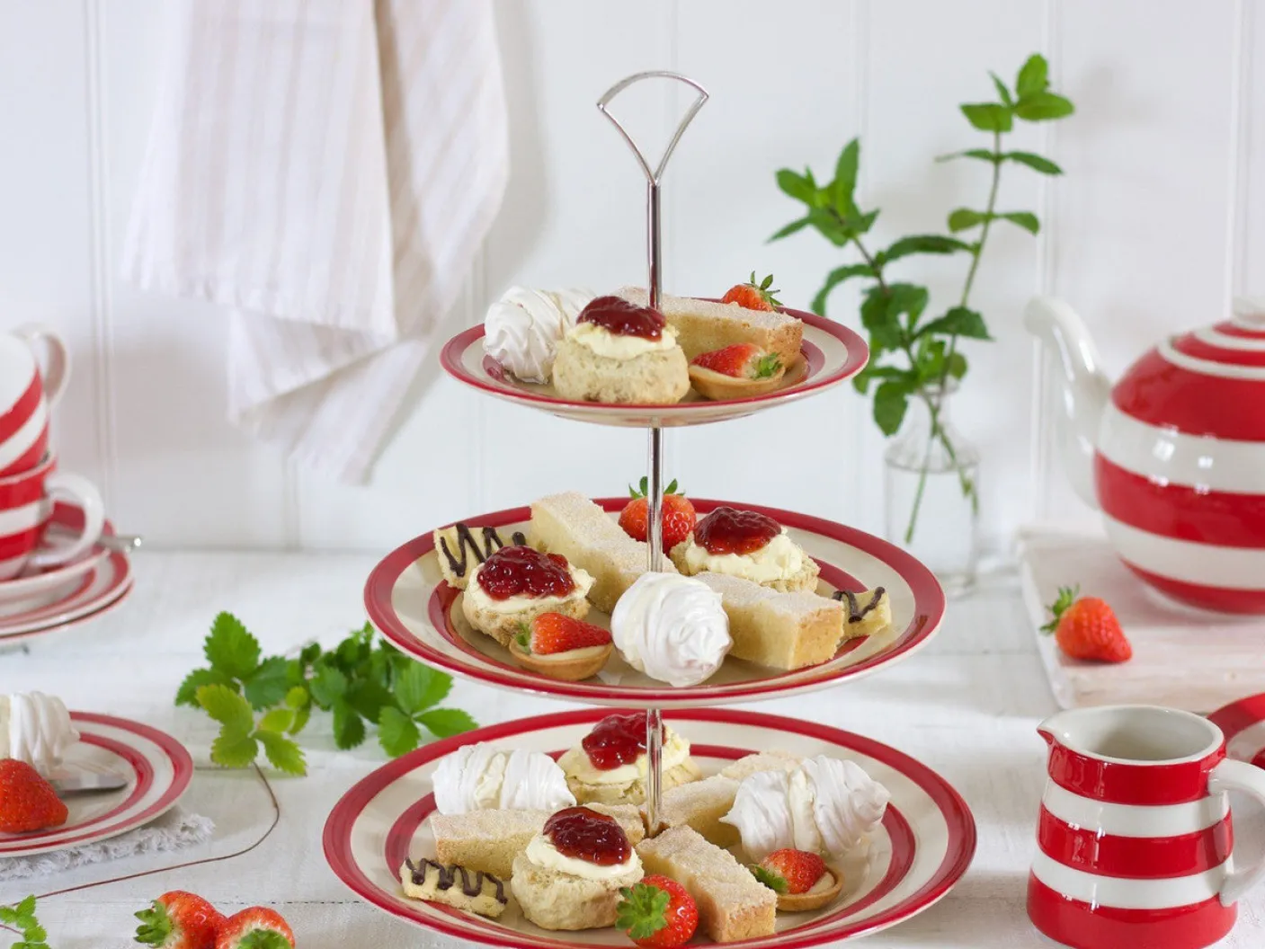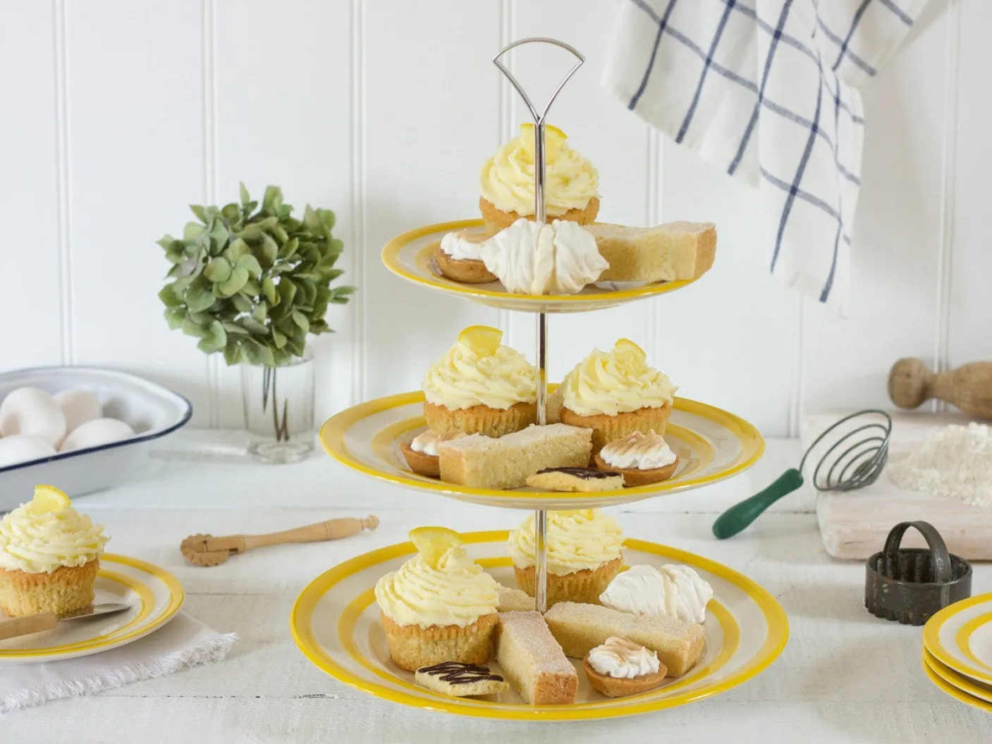 Enjoy a stylish afternoon tea on your favorite Cornishware plates as a cake stand.