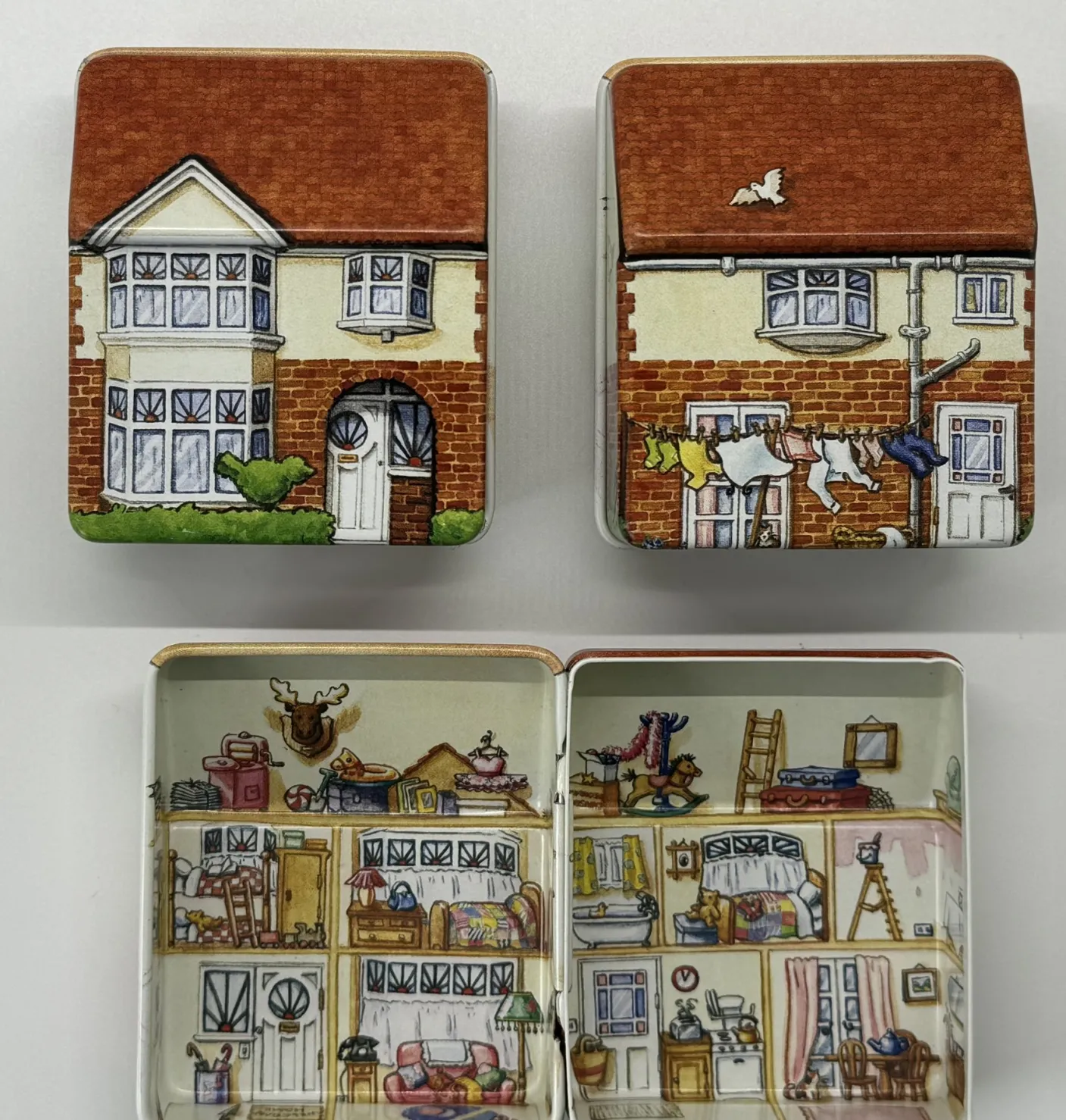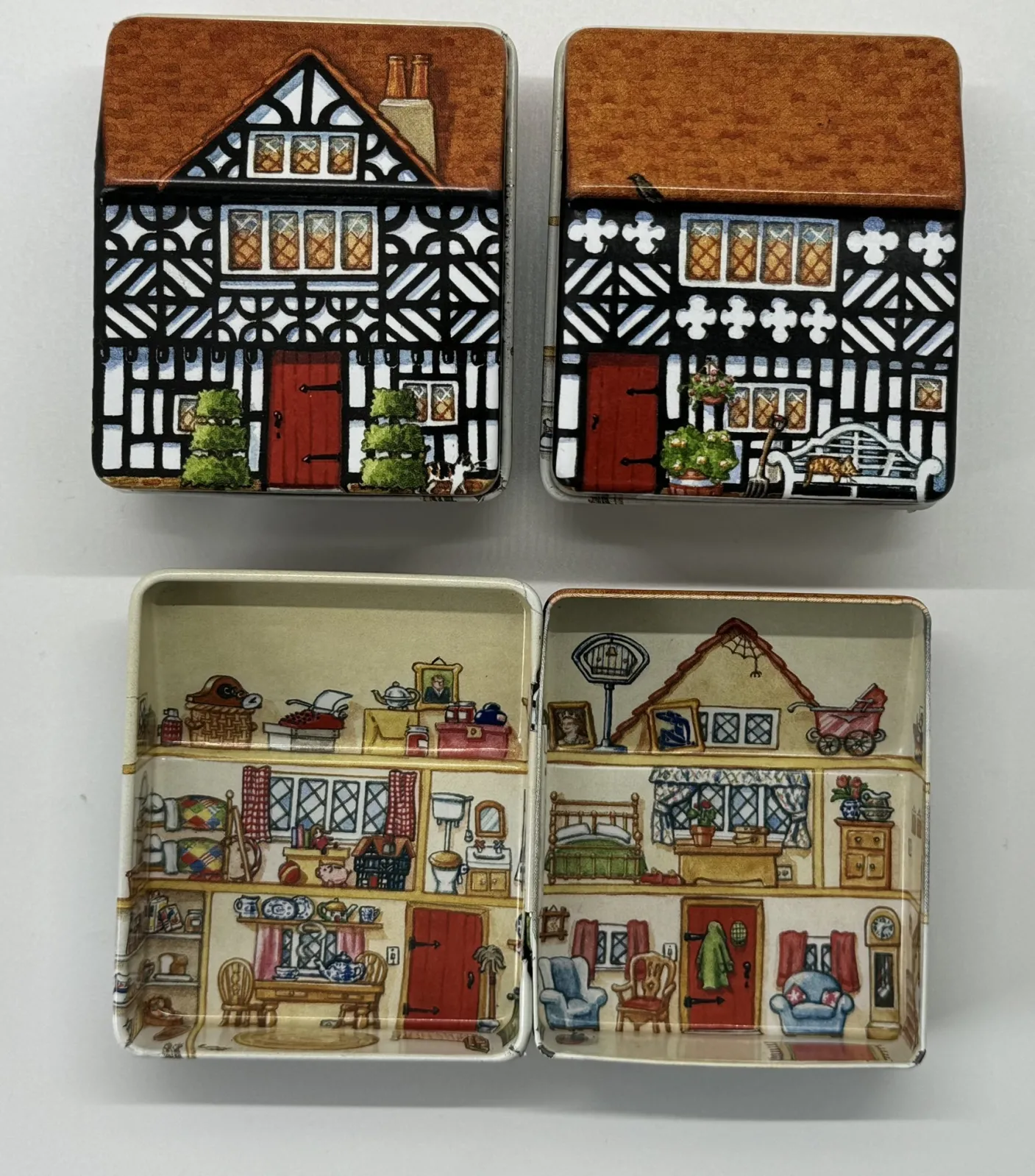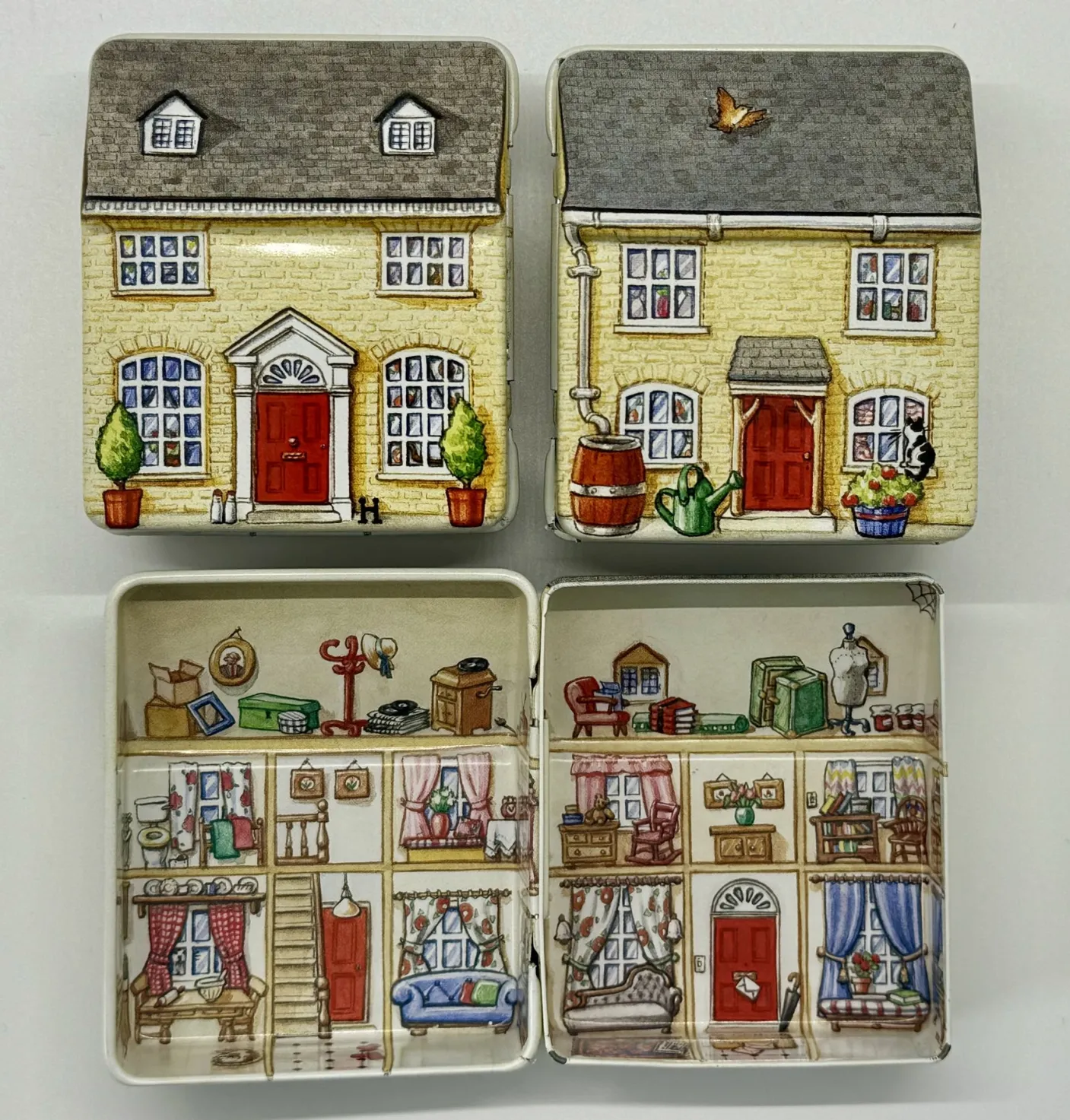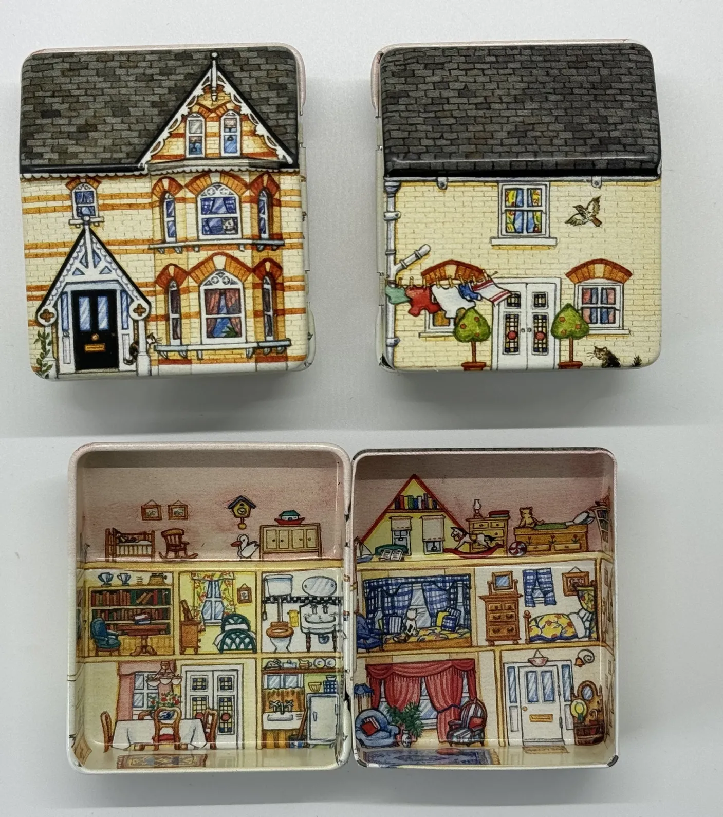 Adorable mini house tins by Dana Kubick and Elite Tins. Choose from 9 designs. Tins open up to reveal the inside rooms.