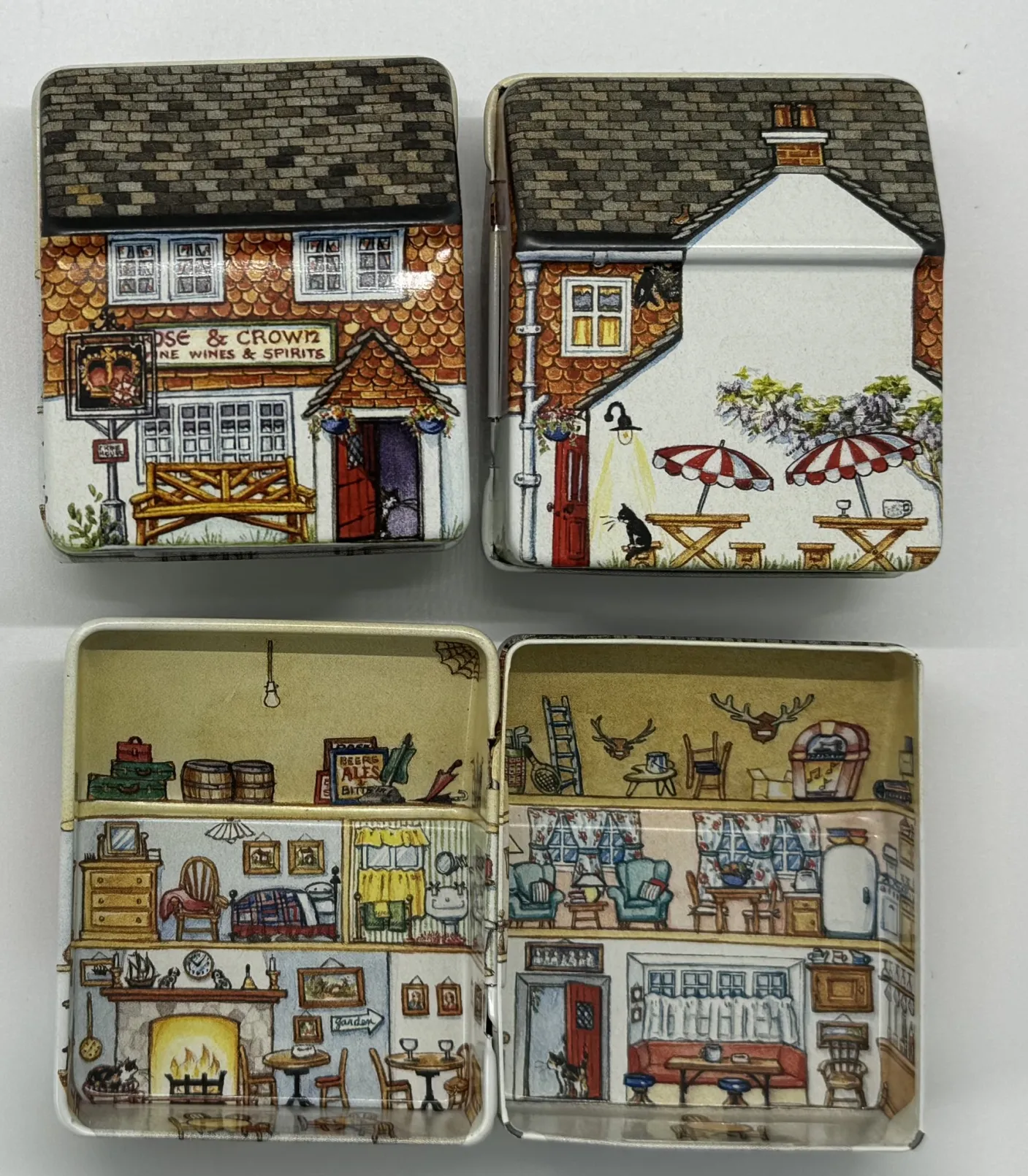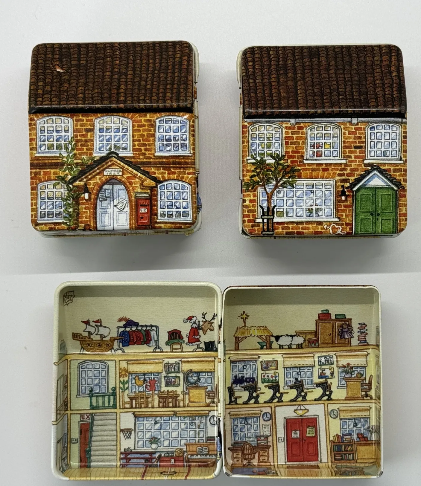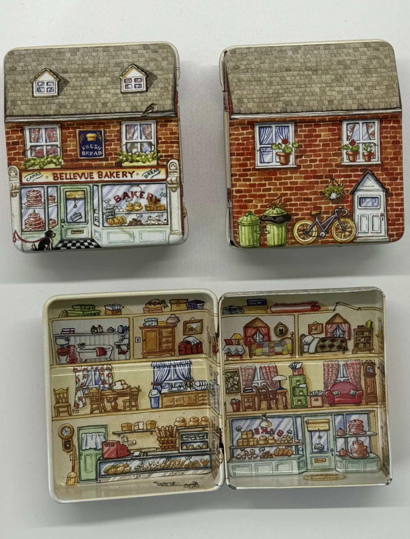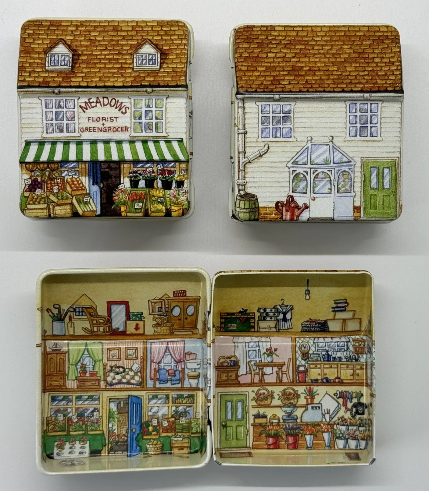 Adorable mini house tins by Dana Kubick and Elite Tins. Choose from 9 designs. Tins open up to reveal the inside rooms.