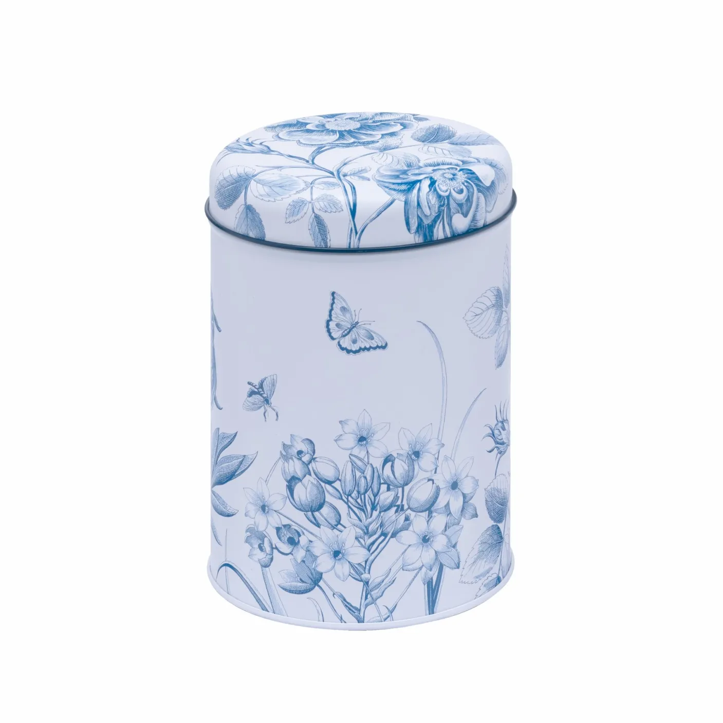 This Sanderson Set of 3 Caddies features an elegant and simple design of blue flowers with butterflies and bees with a striped design on one tin. Coordinate with other items in the Etchings & Roses design collection.