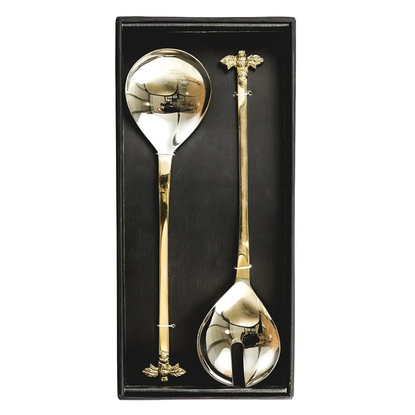 Serve up a tasty fresh salad in style with these bee-autiful gold bee handled salad servers.