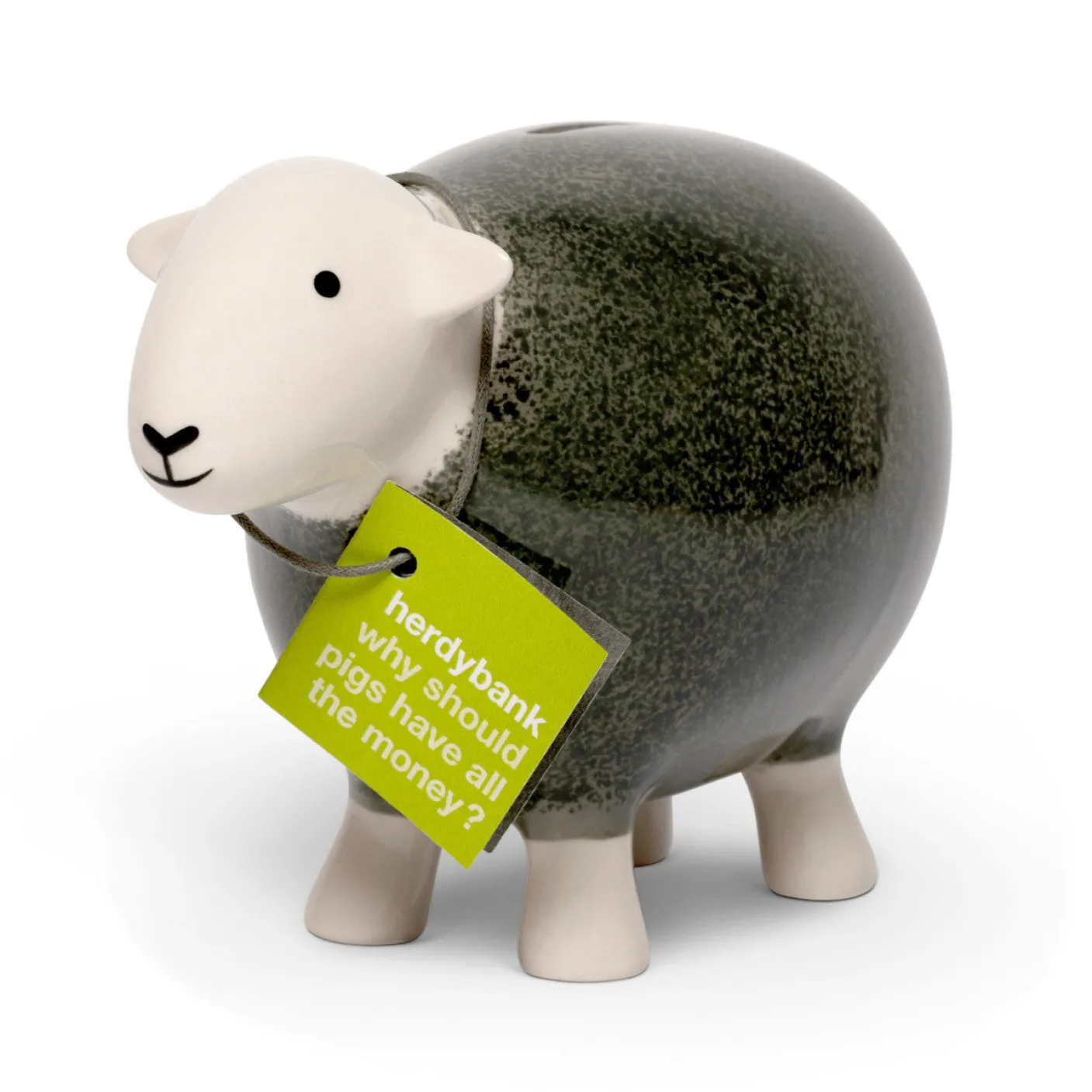 It’s time to switch to the bank of Herdy and put your money into sheep instead! These rather special stoneware money boxes will look after your pennies until it’s time for your next treat! Hand decorated stoneware made by a family run pottery in Sri Lanka. Supplied boxed with neck tag saying “why should pigs have all the money!”