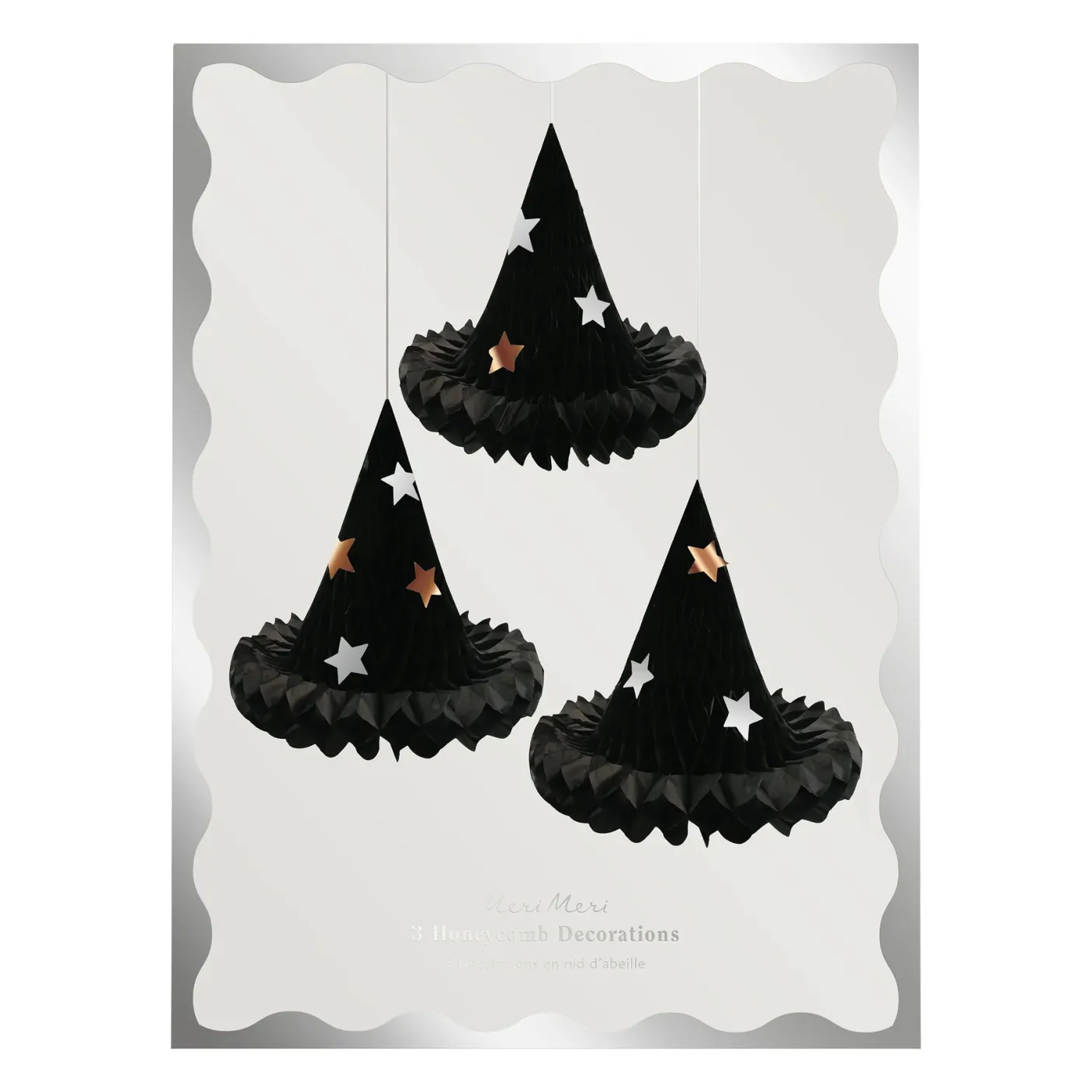 A witch hat is such a fabulous Halloween icon, and these hats from Meri Meri make terrific hanging decorations too. Let these 3 honeycomb hats gently sway in the garden or porch, or dangle from the ceiling, for a thrilling effect. Pack them away after use, then bring back year after year for lots of Halloween fun.