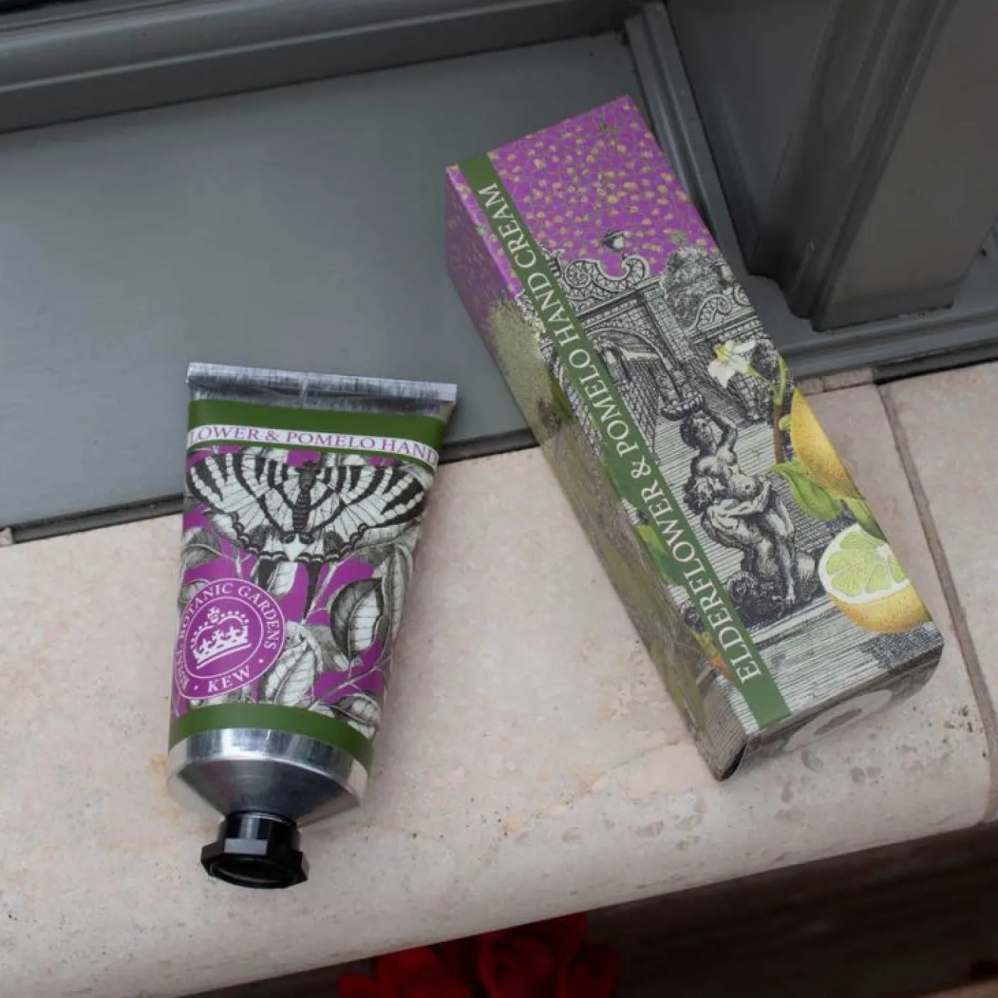 Nourish hard working hands with this Kew Gardens Elderflower and Pomelo Hand Cream, a sumptuous cream with ingredients to keep your skin feeling soft and pampered. Decorated with beautiful illustrations from Kew’s historical archives, this hand cream is the perfect gift for plant lovers or a pampering treat for yourself.