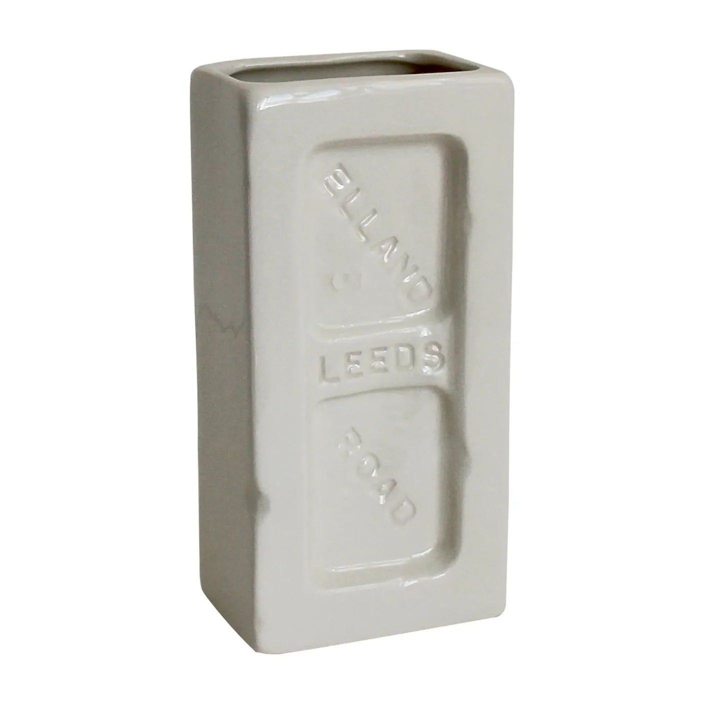 A striking contemporary ceramic vase that takes on the form of the Leeds House Brick.