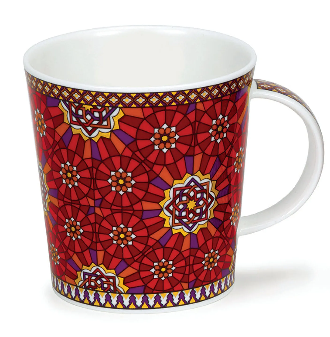 ‘Zahra’ is a set of elaborate persian-style patterns in deep, earthy colours, enriched with 22 carat gold with a sequence of flower shapes in Dunoon’s Lomond shape mug.