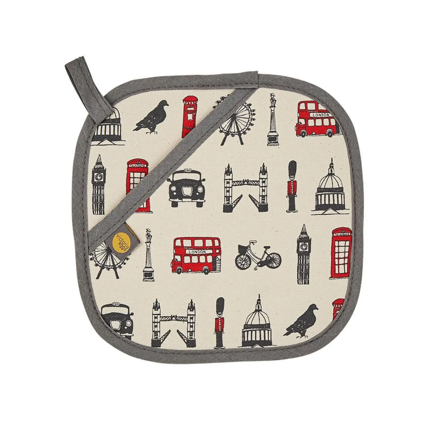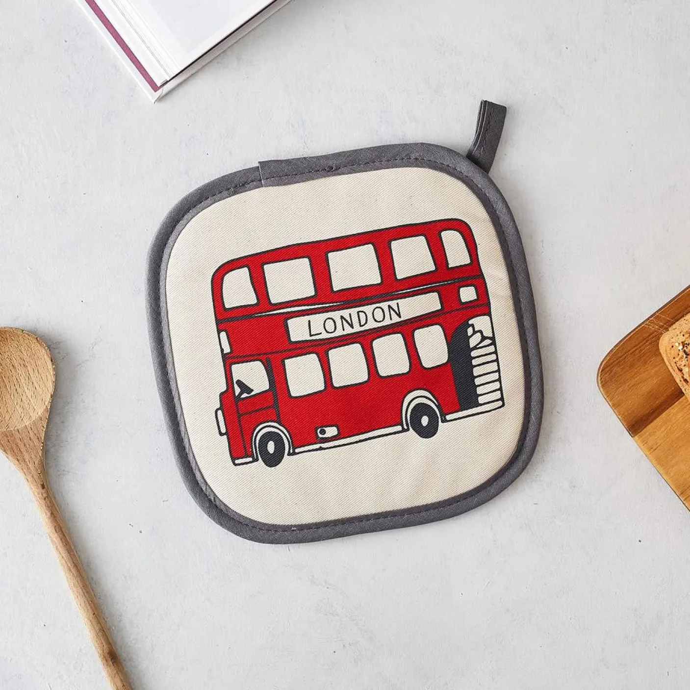 Printed on one side with classic London icons, and on the other with a bold red London double-decker bus,these London pot grabs will brighten up your kitchen and keep your hands protected from hot dishes.