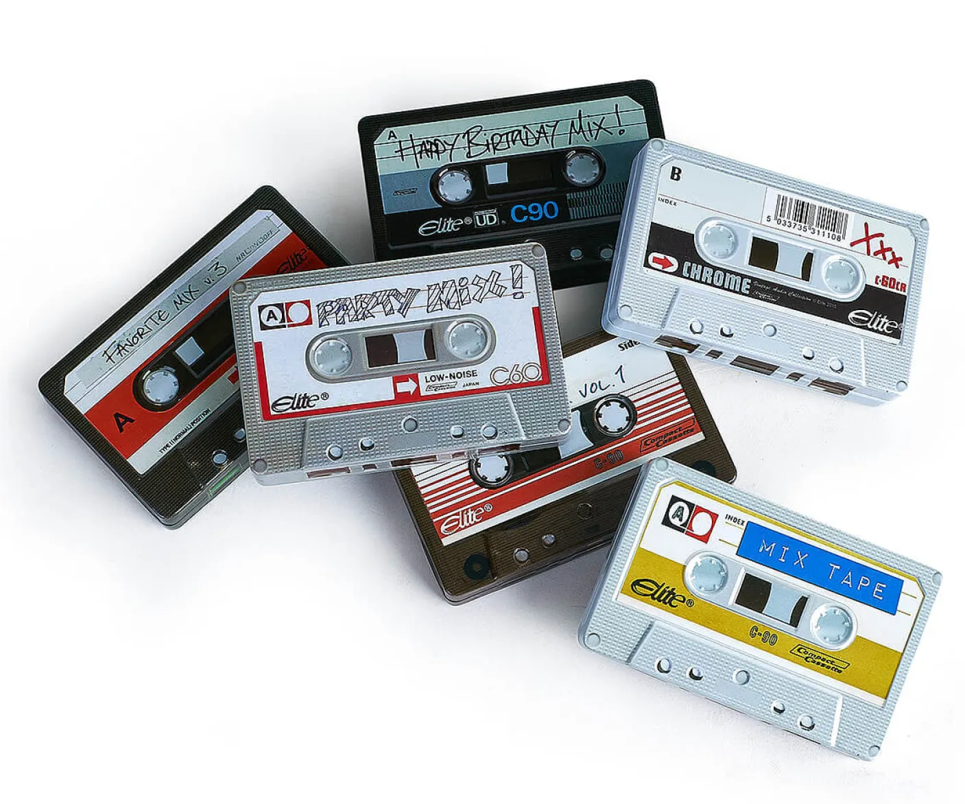Vintage audio cassette tape styled storage tin box with blank “B” side you can write your own message in permanent marker.