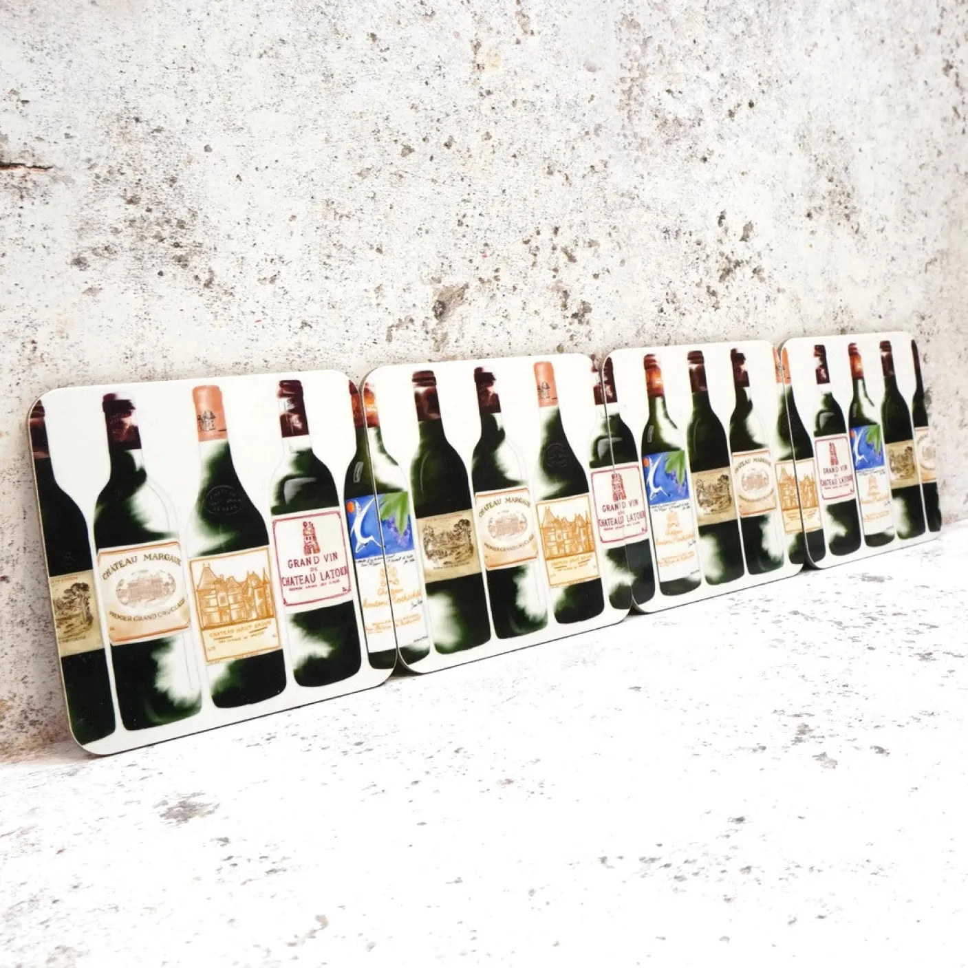 This coaster set is the perfect gift for red wine lovers. Set of 4. Each mat is 4in x 4in.