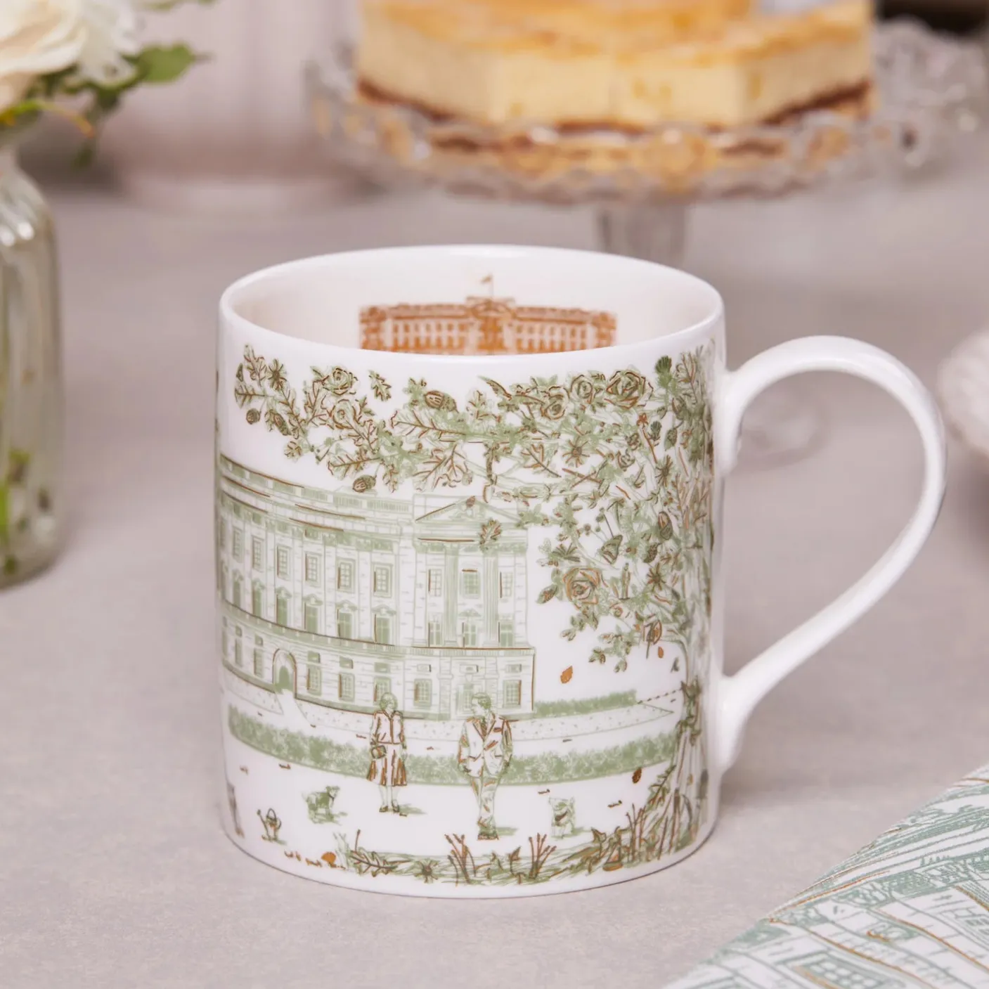 The intricately hand-drawn Royal Family design gazes upon the grounds of Buckingham Palace, as the family go about their daily lives. The fairytale tree represents the unique characteristics of each member. Featuring King Charles, Queen Camilla, William, Catherine, George, Charlotte & Louis.
