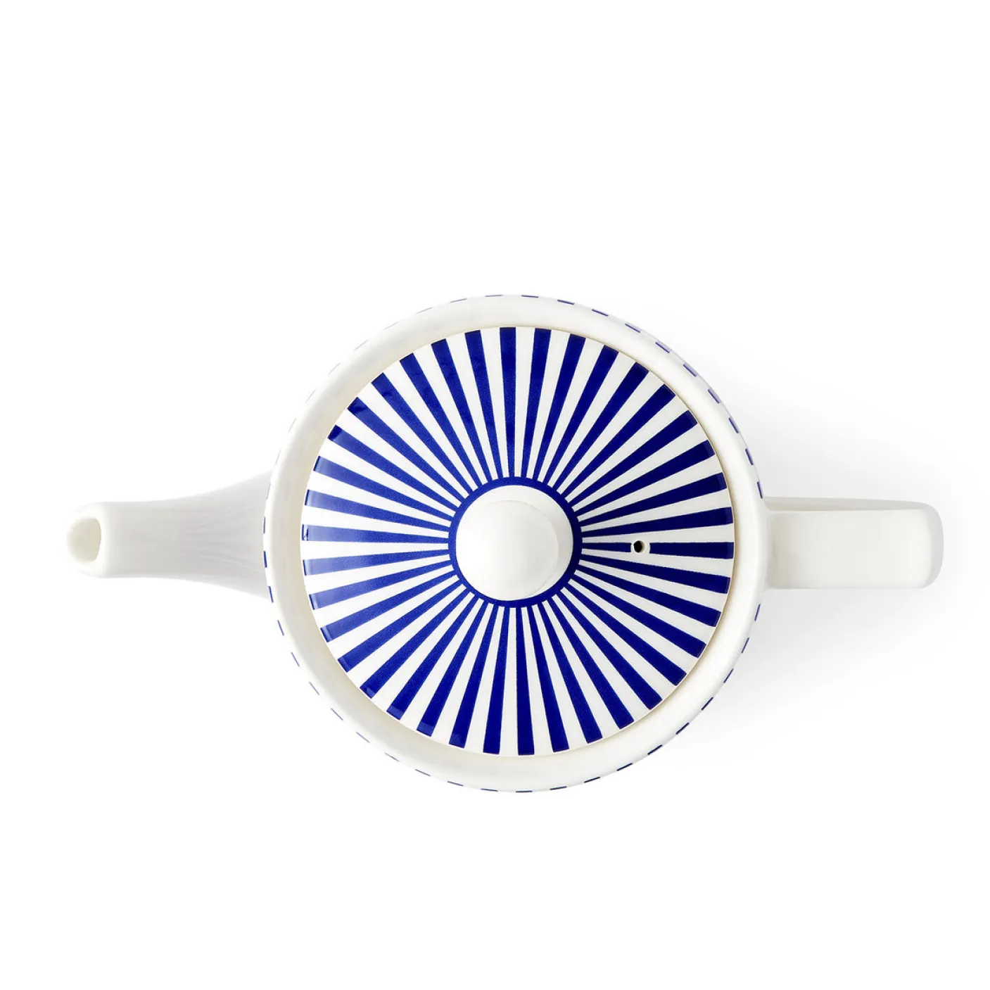 Oozing style and sophistication, this Blue Italian Steccato Teapot is a must-have for any stylish tea enthusiast. Made in England, narrow stripes in striking cobalt blue make a statement on the teapot body and lid, while the expertly shaped handle and spout ensure the perfect pour to make tea time a dream. Generous in size, enjoy multiple cups of your favorite brew with this elegant teapot.
