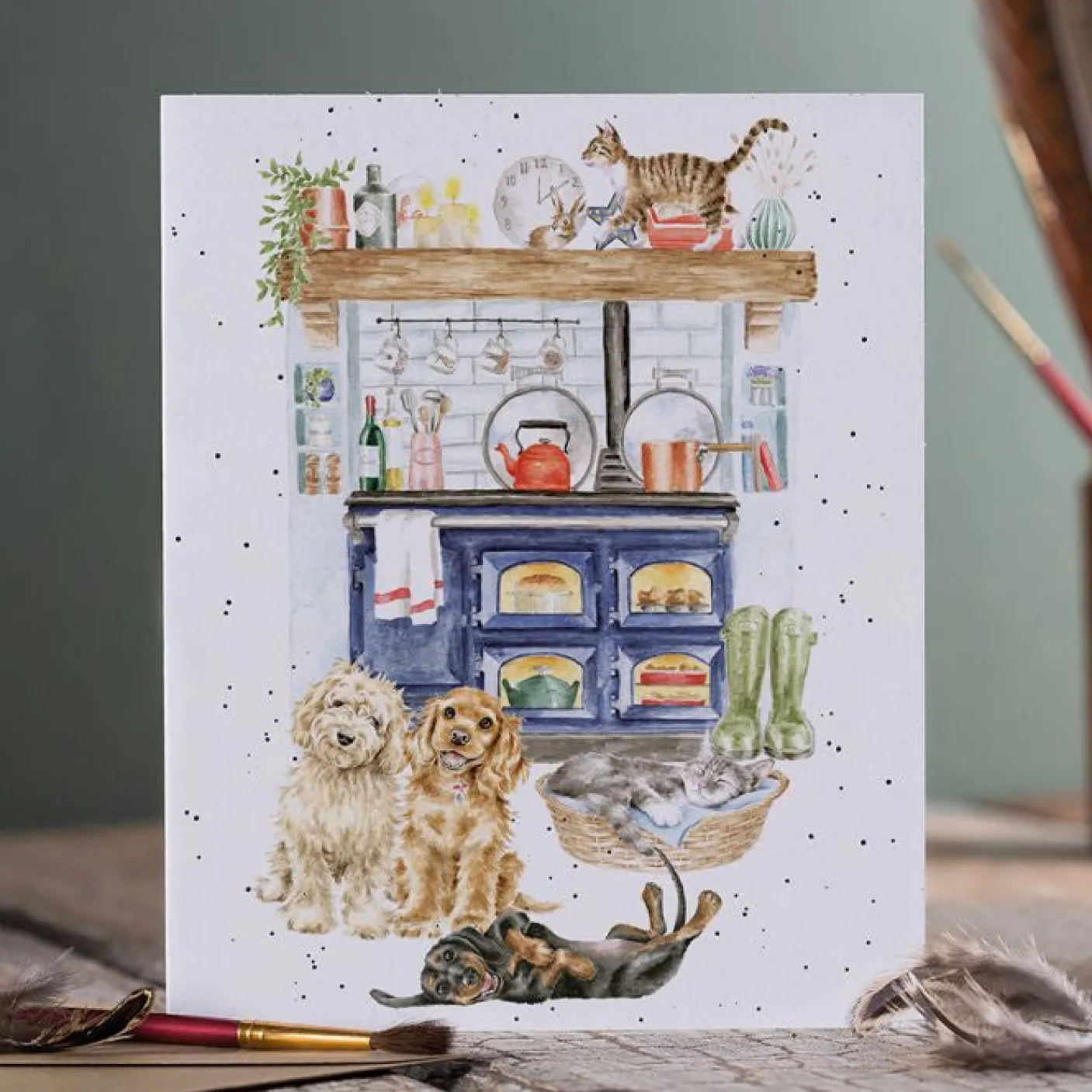 Featuring a cosy kitchen scene this card from Wrendale Designs is perfect for any occasion.The image is printed on high quality, sustainably sourced textured board and is left blank inside for your own message. Supplied with a recycled kraft envelope and measures 6.77 x 4.84 inches.